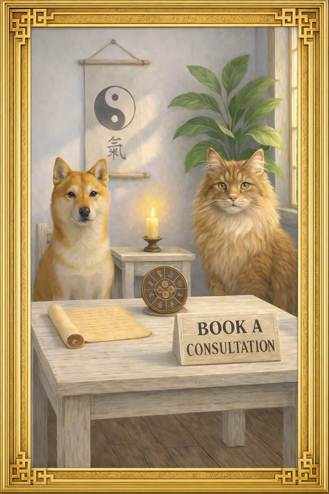 Explore a deeper way to understand your animal companion through personalized Chinese astrology consultations for pets, based on their Chinese astrology birth chart (BaZi chart). Each session offers meaningful guidance into their nature, emotions, and inner world – helping you build harmony, connection, and a more conscious bond.